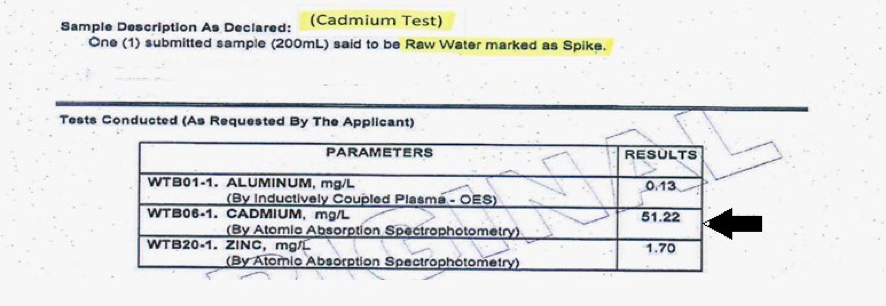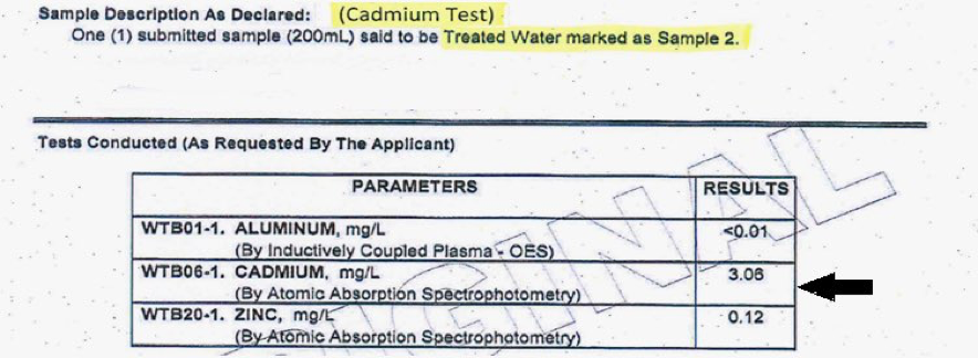 The Energized “MeV” Reactions can break down the electrons which hold the atomic elements together. You cannot oxidize Cadmium (Cd) or break down its 48 electrons. If the water had flowed a little slower through the Energized “MeV” Water Reaction Chambers then the result would have been total destruction of these toxic elements. The Energized “MeV” Reaction Systems do not backwash or discharge any waste water. Energized “MeV” Reactions can break down and destroy the electrons, then the Rings or Shells then collapse, then the Protons and the Neutrons fall apart, we do not split the atom that is why no heat or pressure is created, no explosions can occur.