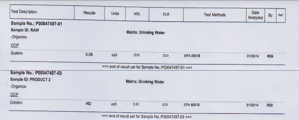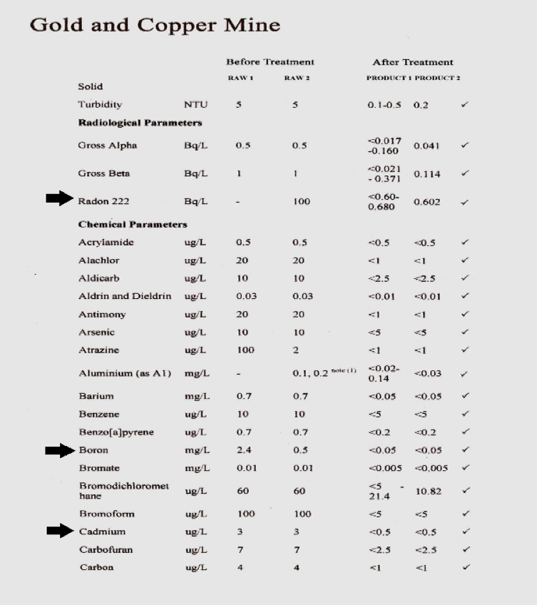 No filters were used in this testing. The Energized “MeV” Reactions break down the electrons surrounding the atoms are broken down and destroyed. The larger the numbers of electrons the quicker they are broken down and annihlated. The atoms are obviously no longer exist as the results clearly show, after flowing through the Energized “MeV” System. This is not a filtering, or reverse osmoses system. No backwashing or discharge, and no toxic waste remains. The Energized “MeV” water technology guarantees chemical free water.
